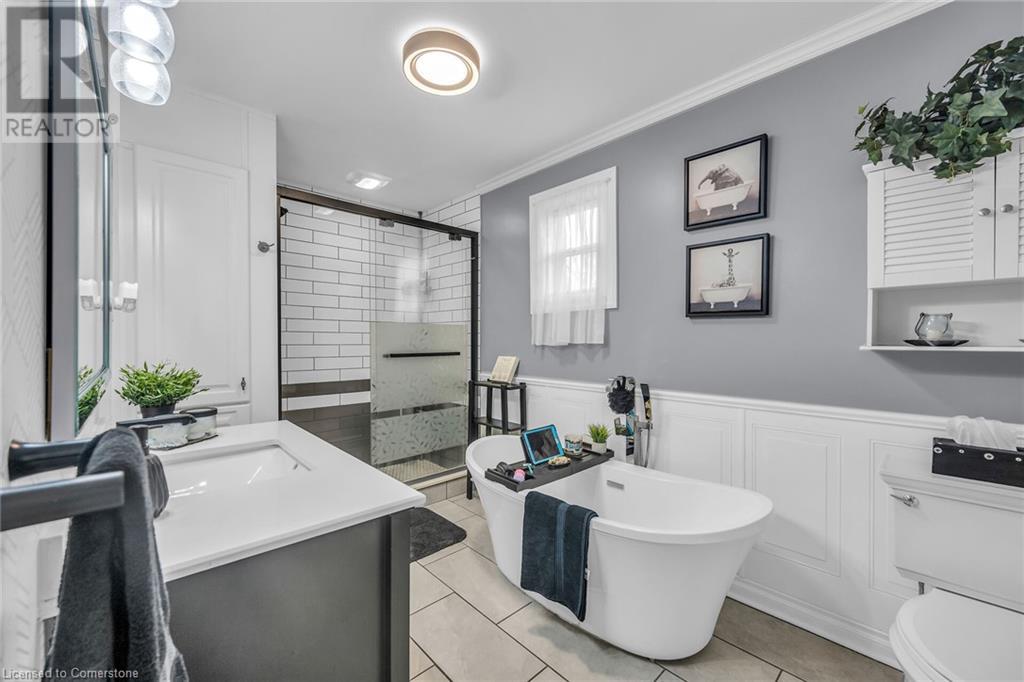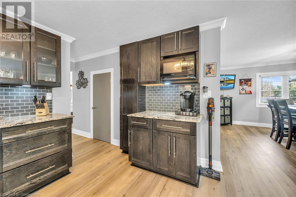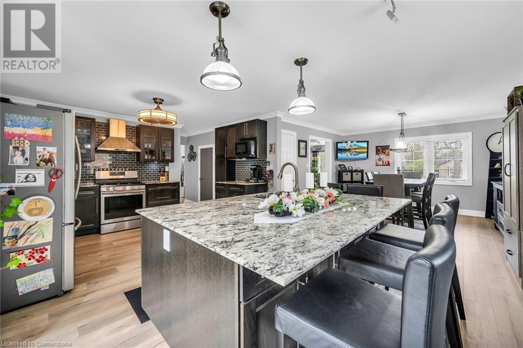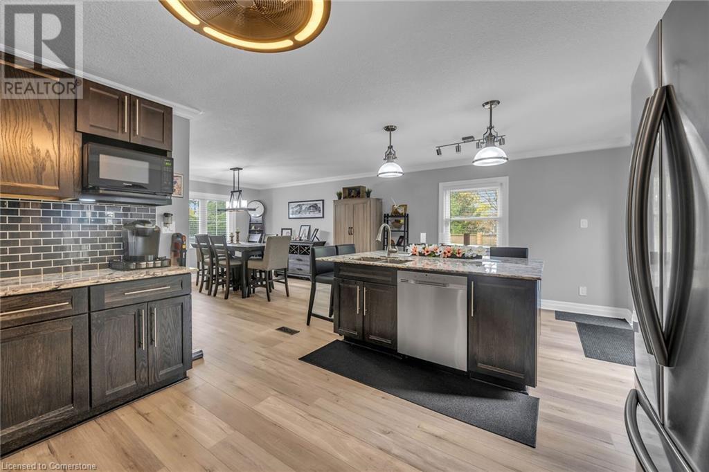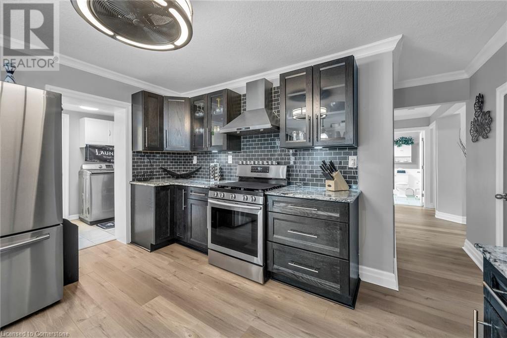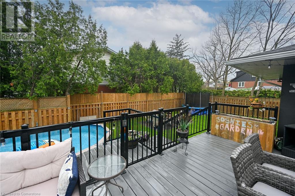 Welcome to 205 Sanatorium Rd! Located in the highly sought after Westcliffe family friendly neighbourhood, close to most amenities including nature trails, schools and Mohawk College, shopping (Meadowlands Plaza and Upper James shops), public transit plus a short drive to downtown Hamilton, Go Station and McMaster University, quick access to Linc, 403 and QEW! This home is impressive, sitting on a rare and oversized corner lot with 80 ft frontage, featuring large and well-appointed rooms. As you enter you will find a welcoming foyer leading you to the living room with large picture window and linear fireplace. There is a “chefs dream” kitchen, with stainless steel appliances including a gas stove, granite countertops, tons of modern cabinetry and a huge centre island measuring 5’ x 7’, this kitchen is not only for cooking but for family and friends to gather! There is a large and bright dining room, two main floor bedrooms, laundry room, a two piece bathroom and a four piece bathroom with walk in shower and free-standing tub. Upstairs you will find two more bedrooms, a perfect teenage retreat or home office! The lower level features a self contained inlaw suite with a modern kitchen, two bedrooms with lots of closet space, three piece bathroom and separate laundry. The rear yard oasis is stunning and is extremely private and peaceful; multi level decks, above ground heated swimming pool, fire pit patio area, newer fencing. Other features and updates include; mature lot with extensive landscaping, newer garden walls and concrete walkways, recently paved driveway to park approximately 5 cars, attached garage, roof approx. 4 yrs, forced air furnace and A/C unit 2 yrs, almost all windows approx. 5 yrs, 200 amp service. BONUS: City approved for a 500 SF main floor addition blueprints available. Don’t miss this opportunity to own this beautiful home! (id:4069)