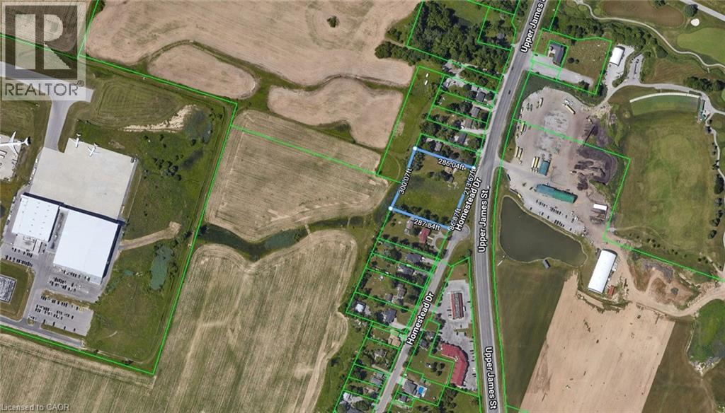 Prime Upper James location with high traffic…a great opportunity for developers! Parcel of land approximately 1.95 AC, 300’ frontage and 280’ deep, close to John C Munro International Airport, hotels, golf courses and Amazon Warehouse. Zoning permits many uses for future development. There is a 1.5 story home with city water and sewers and a double detached garage. Value is in land development, buyer to use due diligence to verify intended use. This lot backs on to a proposed business development including warehouses, offices, commercial ground floor uses, designed as an airport-related industrial-commercial subdivision. Appointments are required to visit the property. Don't miss this amazing opportunity! (id:4069)