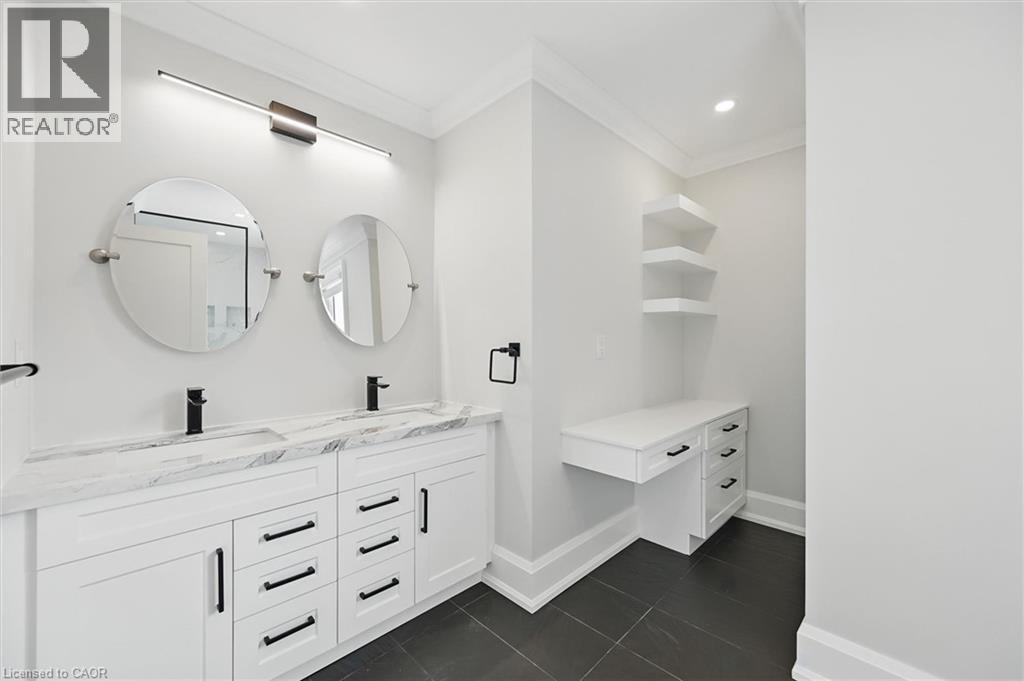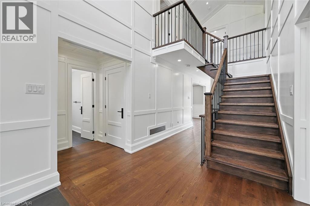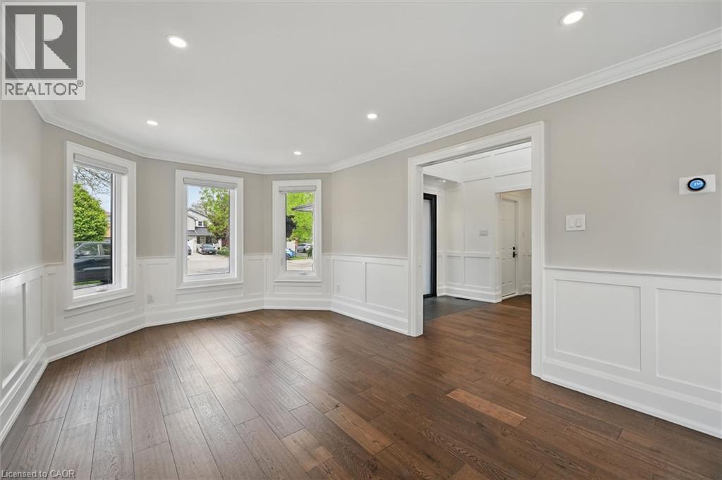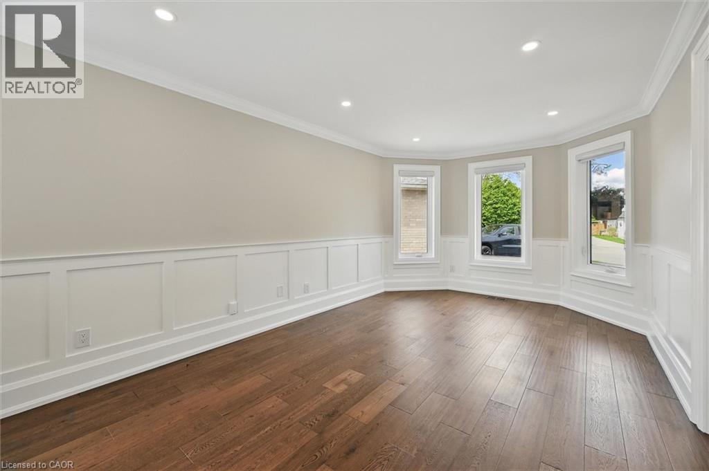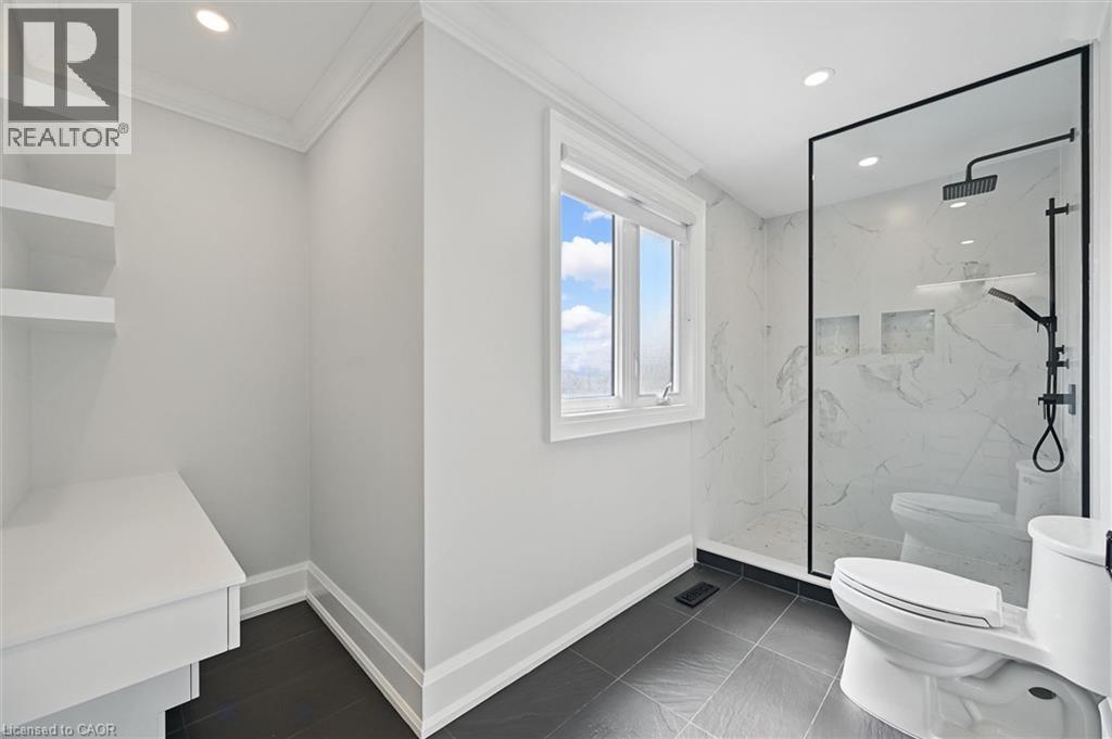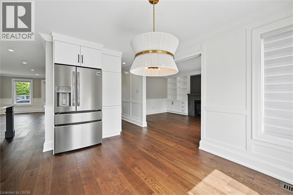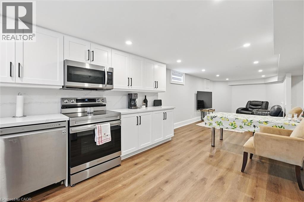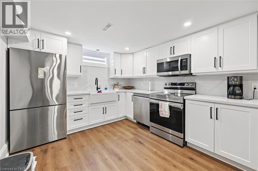 Welcome to 7 Grandview Avenue! Nestled in one of Stoney Creek’s sought-after lakefront beach communities, just steps to Lake Ontario and minutes to shopping, dining, schools, and quick QEW access. Situated on a quiet, family-friendly court, this home was meticulously renovated in 2023 with exceptional quality from top to bottom. A bright, open foyer with soaring ceilings, elegant staircase, and classic wall paneling creates a warm first impression. The main level features a formal living room and a stunning open-concept kitchen with modern soft-close cabinetry, under-cabinet lighting, quartz counters and backsplash, oversized island with built-in wine display, bar fridge and microwave, natural gas range with pot filler, and porcelain apron sink. There is a large dining room with patio doors to rear yard and an inviting family room offers a gas fireplace with custom built-ins, plus a 2 pc bath and large laundry room to complete this level. Upstairs offers three spacious bedrooms, including a primary retreat with walk-in closet and a 4-piece ensuite with double sinks, make-up station and glass shower. A 5-piece main bath features double sinks, deep soaker tub. The lower level includes a fully self-contained in-law suite with separate walk-up entrance, featuring a living room, kitchen with quartz counters and backsplash, stainless steel appliances, bedroom, 3-piece bath, laundry, and ample storage. The fully fenced pie-shaped yard boasts a huge exposed aggregate patio, concrete pad for future shed, and plenty of space to entertain or for kids to play. Extensive upgrades include trim and wainscoting, 5” engineered hardwood flooring, solid interior doors, 7” baseboards, crown molding, pot lights throughout, custom closets, and modern iron railings. Exposed aggregate driveway, walkways, and patios with stamped concrete borders. Double attached garage and double-wide driveway for up to 8 cars. 13 appliances included. Nothing to do but move in! (id:4069)